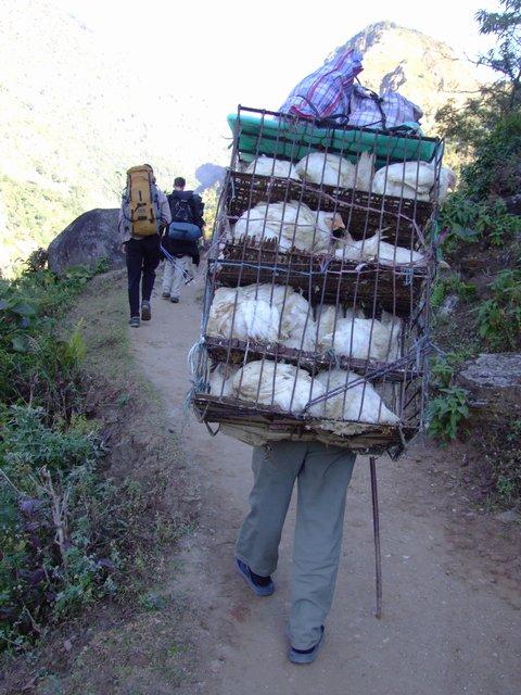 Quickly after we started the road became just a track where all traffic consist of Mules and Donkeys loaded up with all sort of stuff and people carrying enormous loads in baskets on their back strapped to the head.