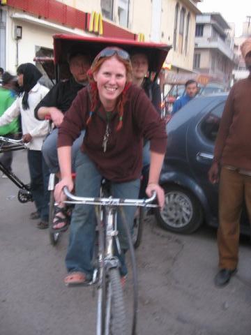 Afterwards Mick and me rode rickshaws through town where the reaction from people around differed from pointing, shouting, laughing and jumping up and down to being completely flabbergasted by seeing a white (more red actually) woman cycling the rickshaw…