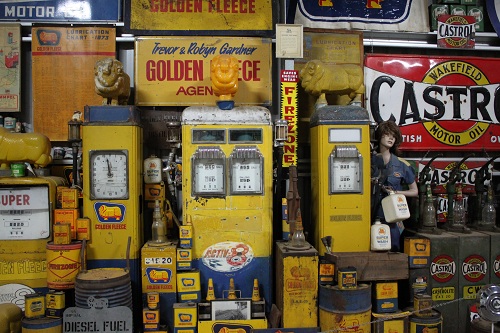 Old cars and motorbikes were scattered around, and an array of bicycles was strung up in the trees.the collectors collection