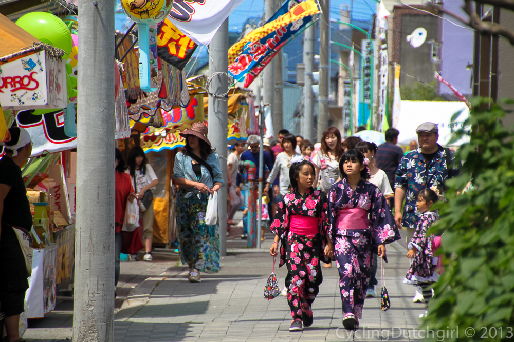 I still haven’t figured out what kind of festival it was, but it included a parade and a lot of very pretty girls. Lots and lots of food stalls.