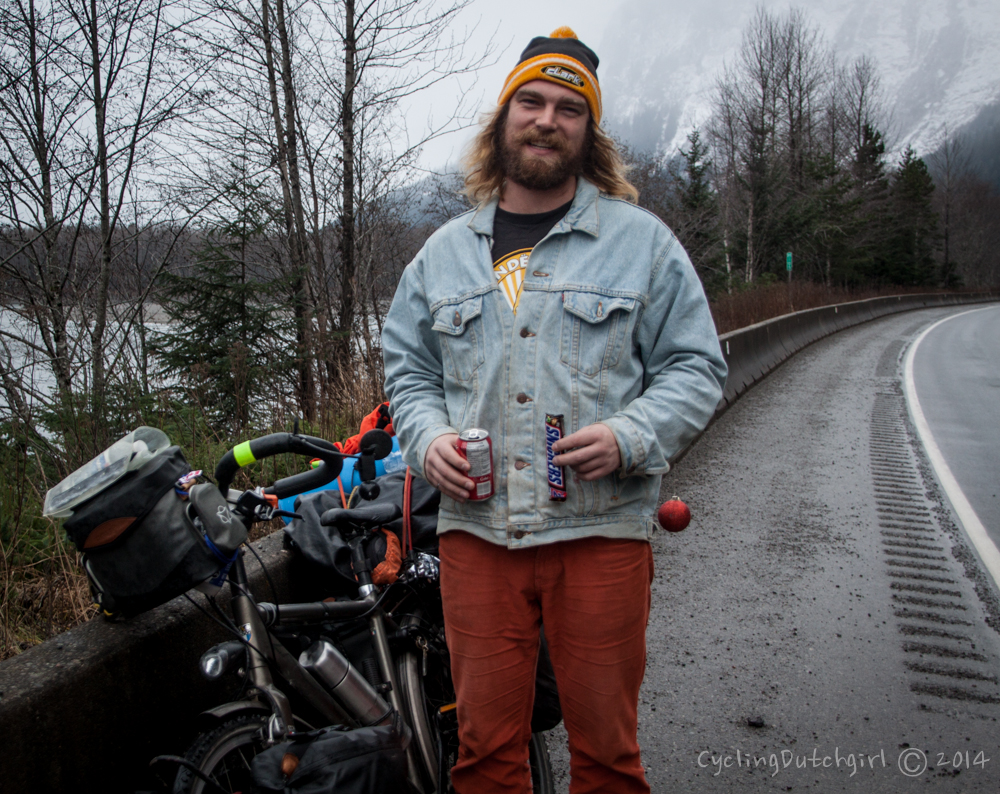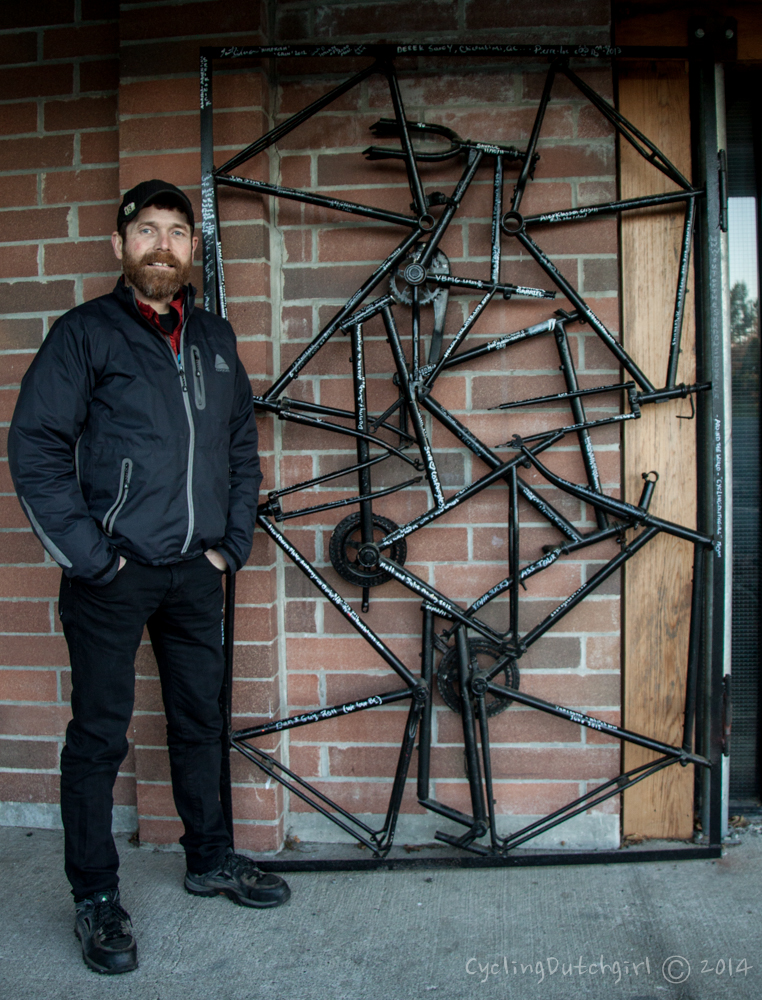 He works in the best  bike shop in BC, where I signed my name on the gate for passing touring-cyclist. He also made sure my bike was in tip top condition for the rest of my trip and let me crash on his couch!