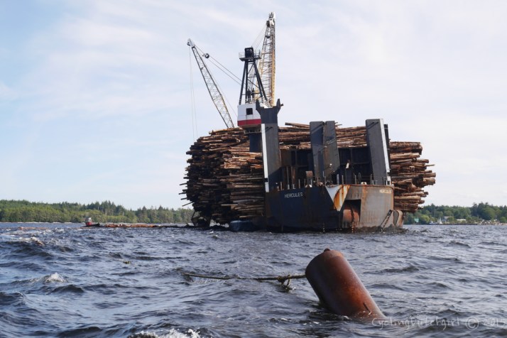 The day I was here I got to see how the logs are collected on the water and taken to a large barge to move them to a mill in Vancouver and onwards. The barge