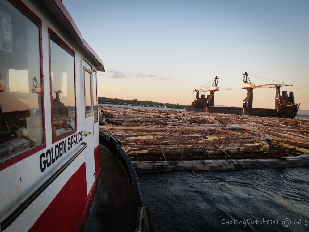 The day I was here I got to see how the logs are collected on the water and taken to a large barge to move them to a mill in Vancouver and onwards. The barge